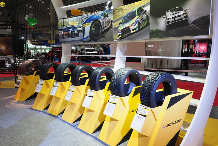 本次展台分为4个区域,其中 “历史展区”展出了与邓禄普有着深厚历史情结的宾利赛车,并通过宣传栏介绍了邓禄普品牌130年间的历史。另外,“赛车运动展区”展出了NSX GT500等参赛车辆以及DIREZZA运动系列轮胎。在运动轮胎的研发制造方面,邓禄普为赛车和改装车提供了优质解决方案。中间通道部分设置了邓禄普 “轮胎阵容展区”,最新发售的“ENASAVE”系列以及冬季热卖的“WINTER MAXX”系列轮胎重磅亮相,其在抓地性能、操控精准度、稳定性等方面尽展实力,整个展台以邓禄普品牌的黑色和黄色为主色调,远远望去,设计大方新颖,引人注目,为参观者呈现了一场完美的视觉盛宴。